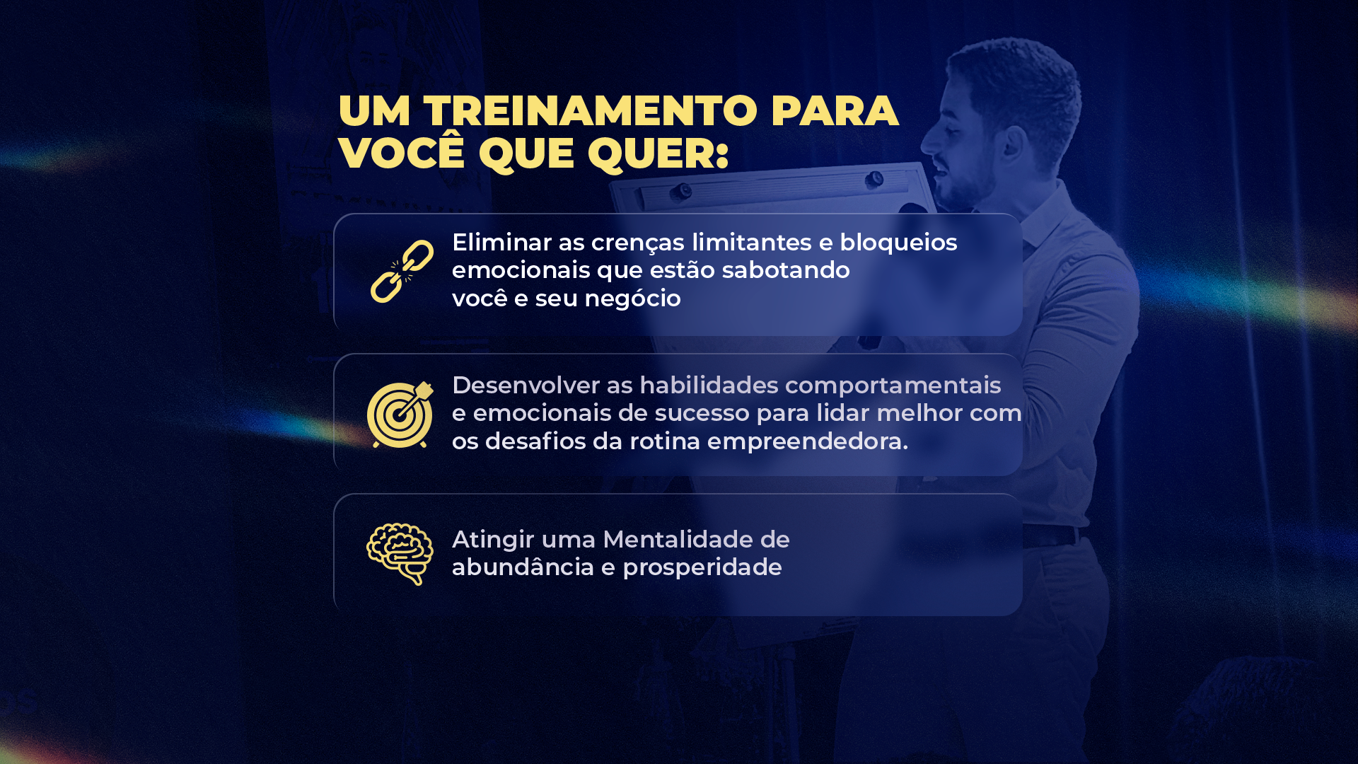 Na NOITE DA TRANSFORMAÇÃO, você vai descobrir como desenvolver habilidades essenciais para liderar com mais estratégia, clareza e impacto. Aprenda a equilibrar rotina e crescimento pessoal para alavancar seus resultados.Melhore sua comunicação e engajamento com a equipe e construa um futuro sólido e sustentável para seu negócio.